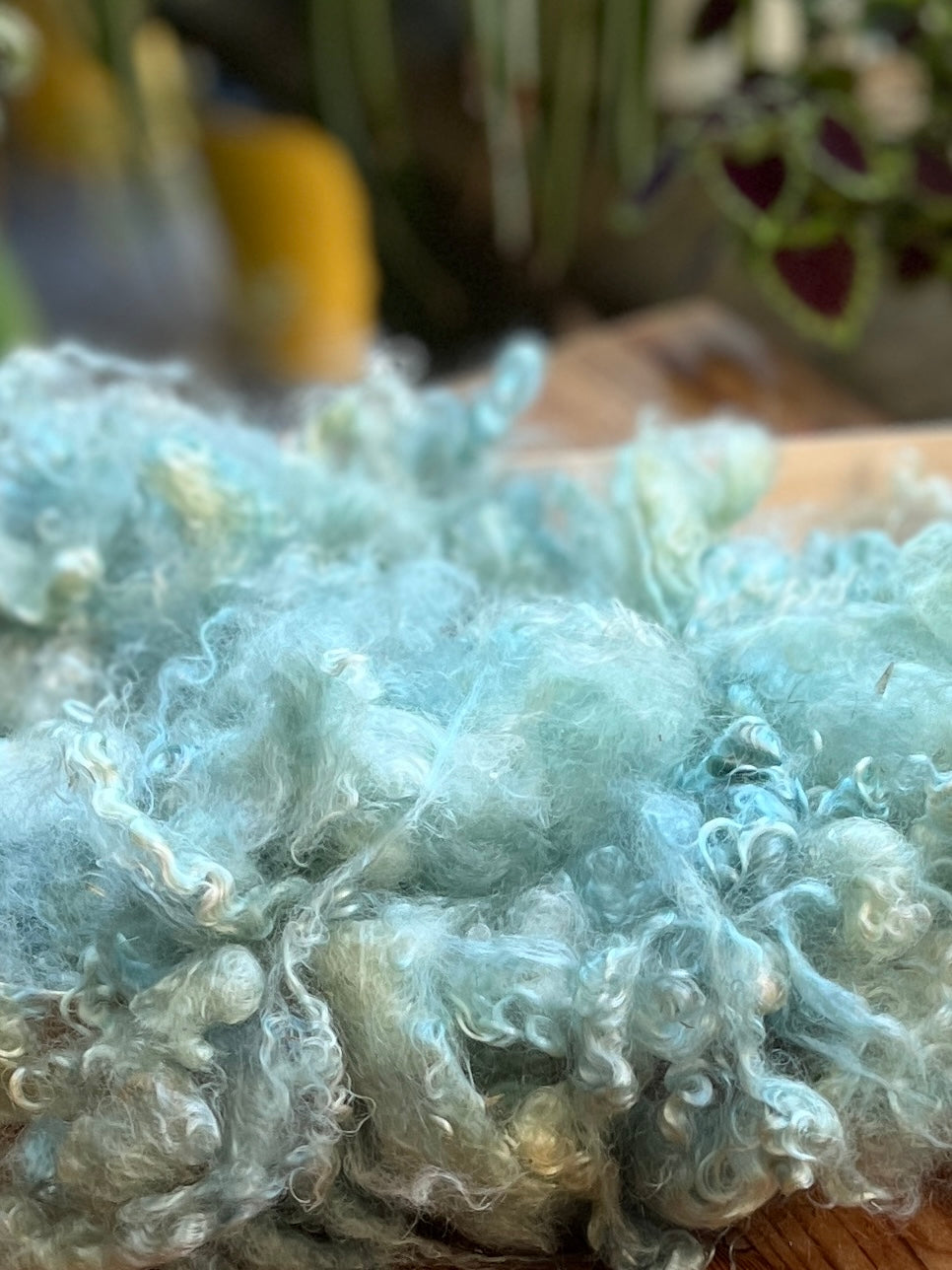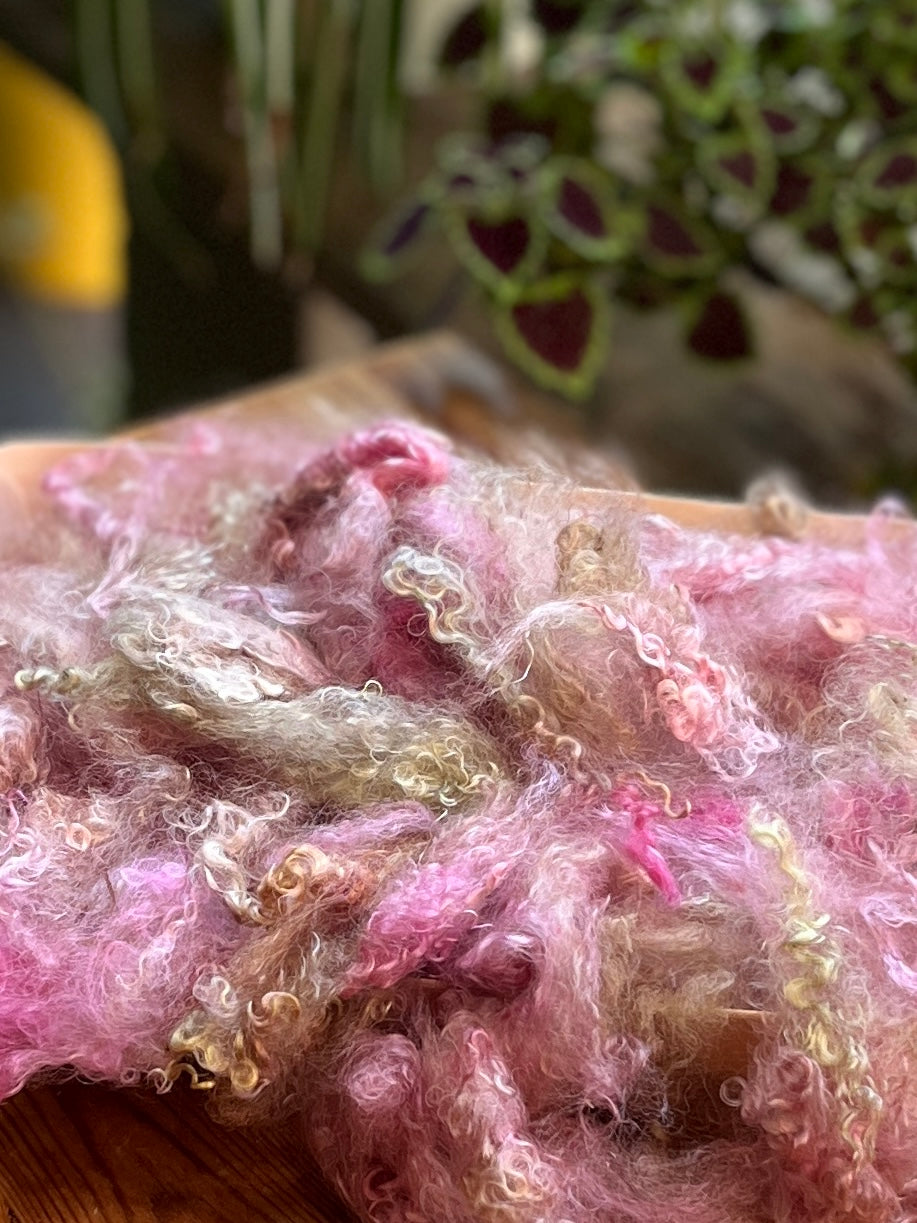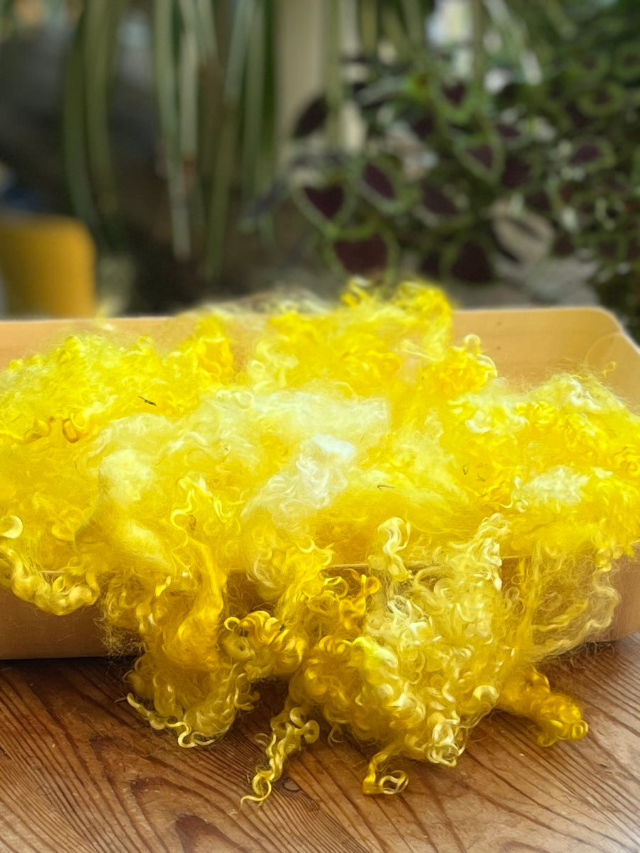 Cette fibre de mohair provient d'une ferme en Ontario. Ajoutez juste 10 % à vos mélanges de fibres et vous pouvez tricoter des chaussettes. Le mohair ajoute de la force aux tricots. Vous pouvez également utiliser cette fibre dans vos projets de feutrage.