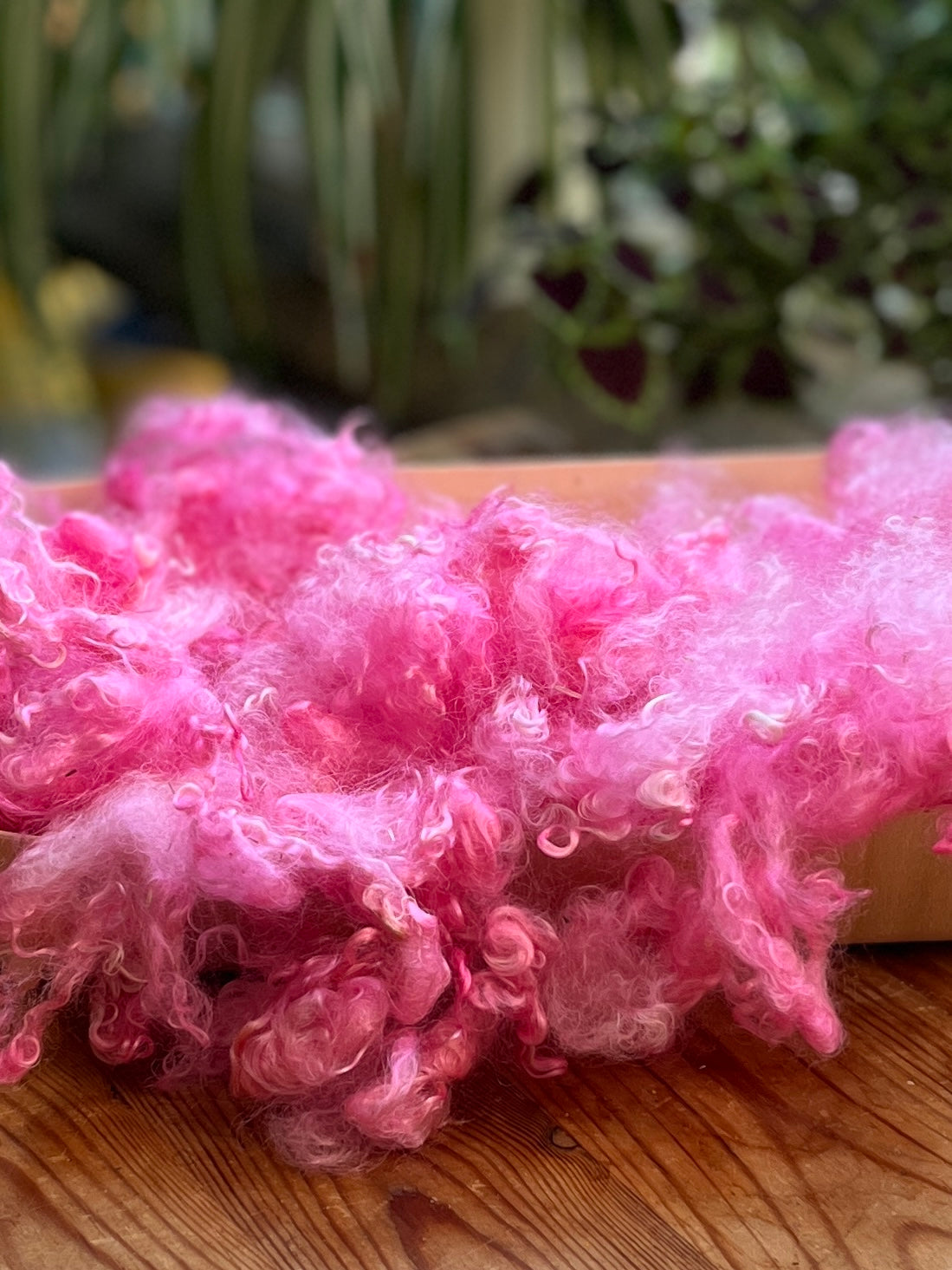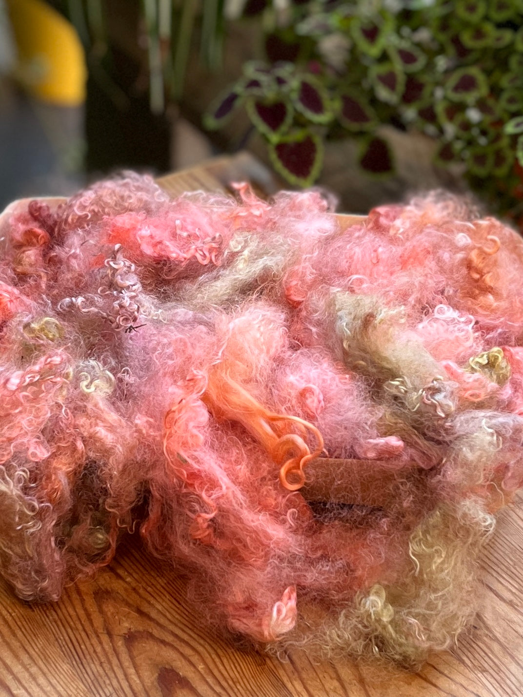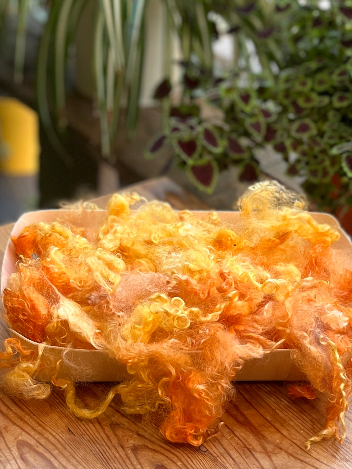 Cette fibre de mohair provient d'une ferme en Ontario. Ajoutez juste 10 % à vos mélanges de fibres et vous pouvez tricoter des chaussettes. Le mohair ajoute de la force aux tricots. Vous pouvez également utiliser cette fibre dans vos projets de feutrage.