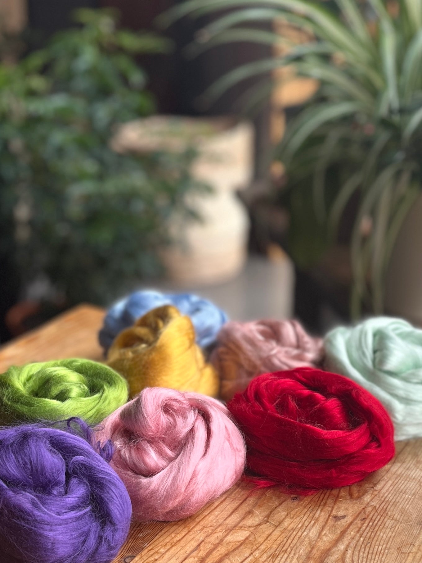 Viscose, ce matériau peut être ajouté lors de l'assemblage des fibres sur la cardeuse ou la cardeuse à main, pour vos battages artistiques. C'est une alternative à la soie, au bambou et au tencel. La viscose ajoute de la brillance au fil.
