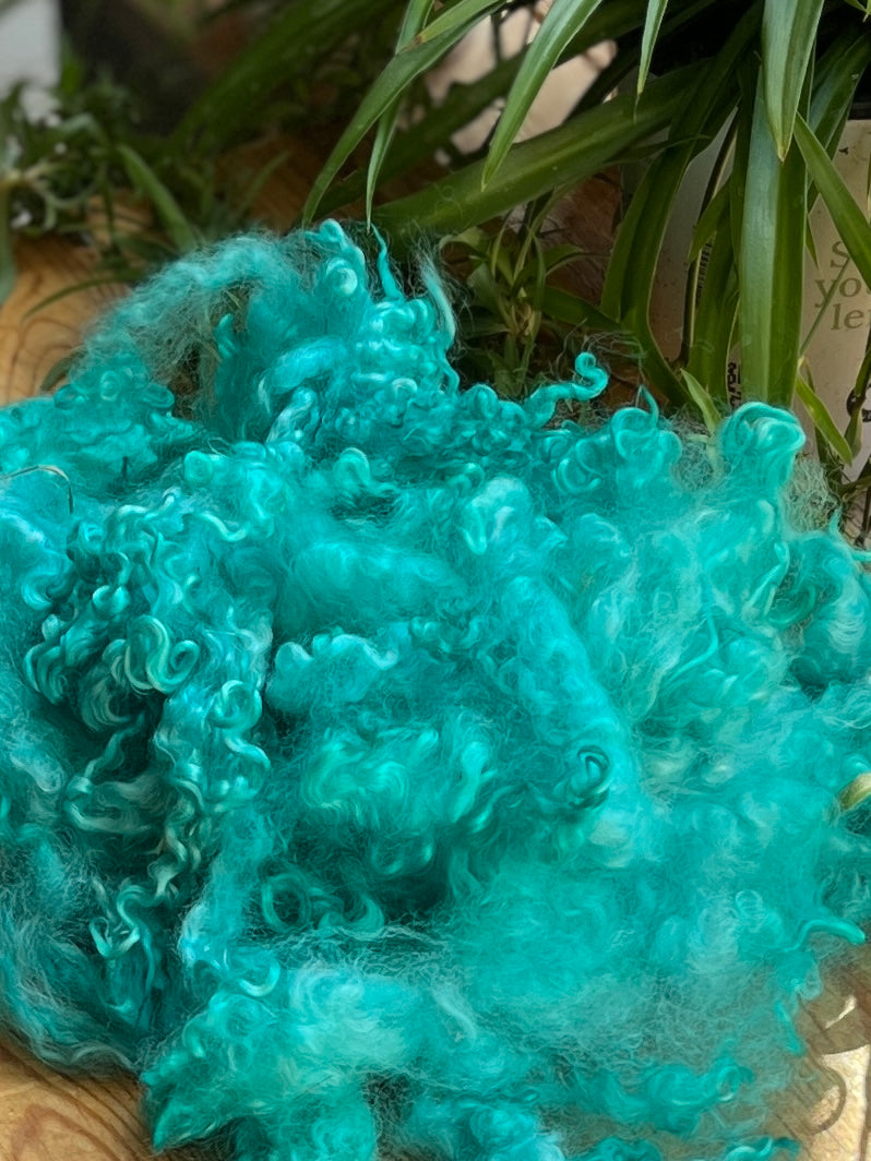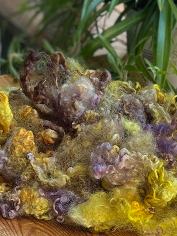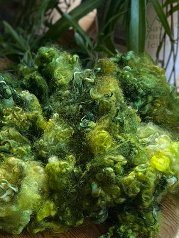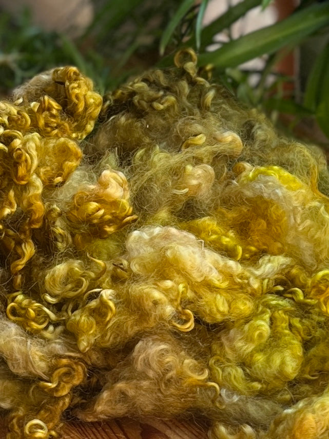 La fibre Wensleydale provient d'une ferme au Manitoba. Cette race de moutons est croisée avec des moutons Cotswold. Les propriétés brillantes des moutons Cotswold se marient magnifiquement avec les propriétés des moutons Wensleydale. Vous trouverez de longues mèches pour le filage ou pour vos projets de feutrage. Depuis trois ans, je suis fiere de vous offrir ces fibres de nos éleveurs canadiens.